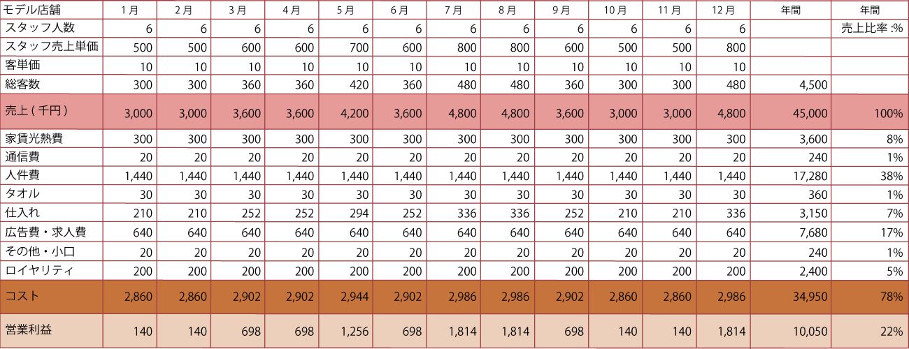 【ベッド4台、スタッフ6名、ロイヤリティ20万円の場合】